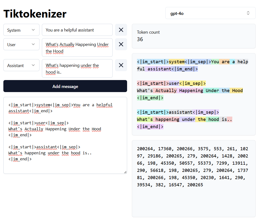 Large language models (like GPT-4o and Claude Sonnet 3.7) don't process raw text directly – they work with tokens. Every input gets encoded into these token building blocks for the model to understand, and every response gets decoded back into human-readable text.
