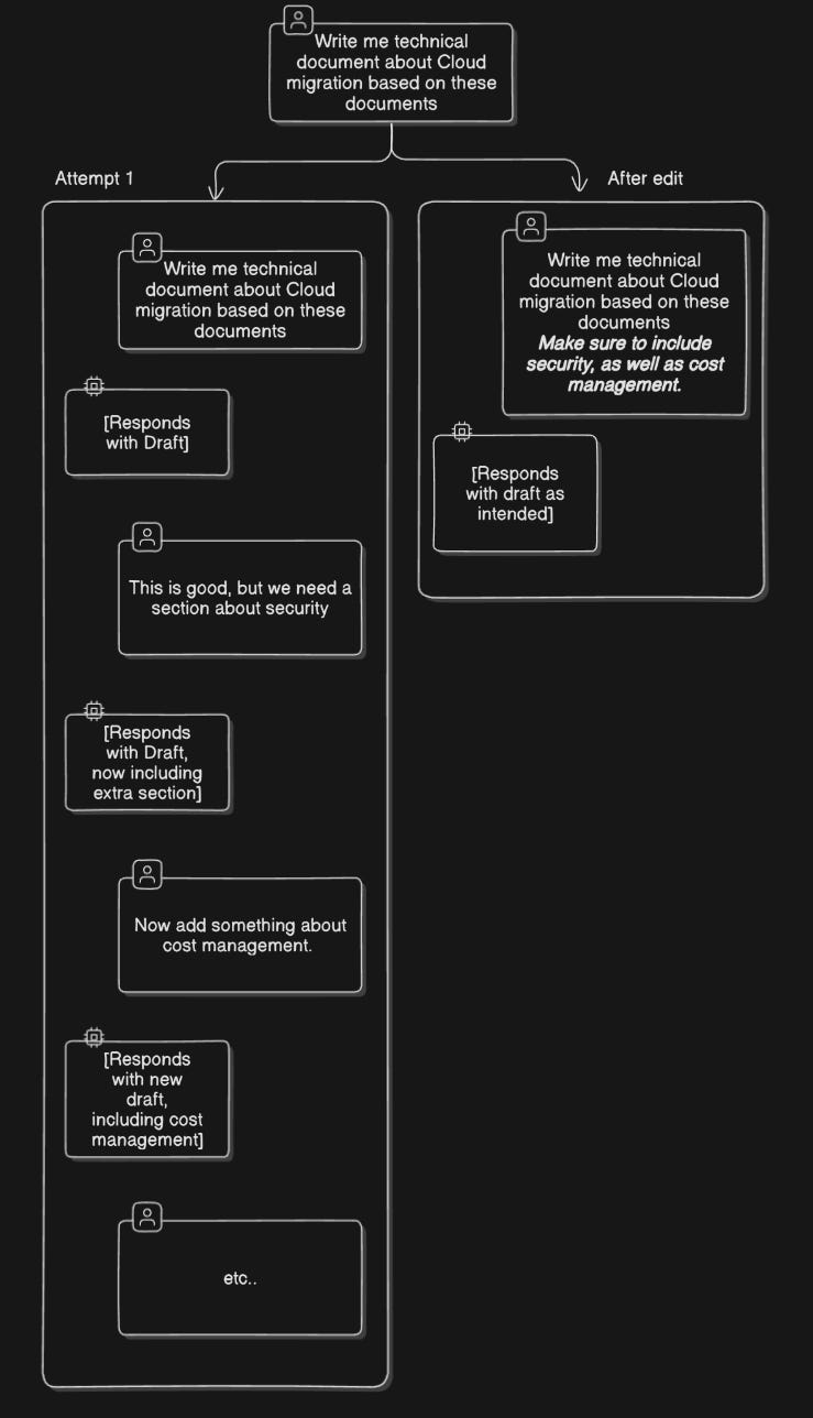I use this constantly when refining documents or debugging code. Rather than having multiple versions floating around in the context, I update my original request with new specifications.